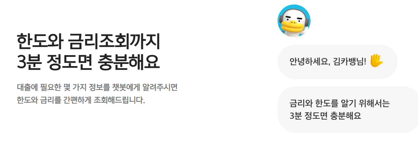 - “챗봇으로 한도 조회부터 대출 실행까지 모든 과정이 정말 쉽고 빨랐어요. 복잡할 줄 알았는데 단계별로 친절하게 안내해줘서 편리하게 이용할 수 있었습니다.”