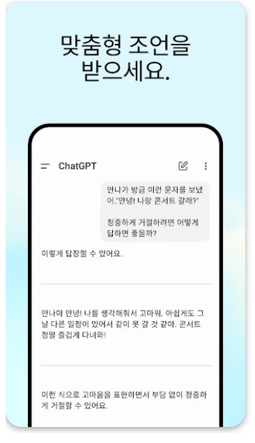 또한 ChatGPT는 웹 기반과 모바일 앱을 통해 손쉽게 접근할 수 있어, AI에 익숙하지 않은 일반 사용자도 쉽게 사용할 수 있습니다. 기본적인 사용법만 숙지하면, 전문 지식이 없어도 다양한 분야에서 실용적으로 활용할 수 있는 것이 큰 장점입니다.