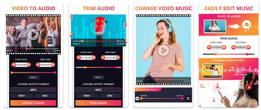 오디오 추출기는 비디오에서 오디오를 추출해 MP3, AAC, WAV 등 다양한 형식으로 변환할 수 있는 앱입니다. 세밀한 구간 편집과 반복 재생 기능을 지원하며, 추출한 오디오를 비디오에 재적용할 수도 있습니다.