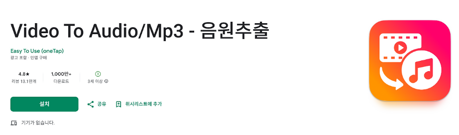7. 유튜브 음원추출 앱: Video To Audio/Mp3