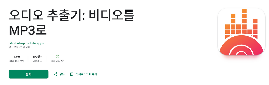 8. 유튜브 동영상 mp3 변환 어플: 오디오 추출기