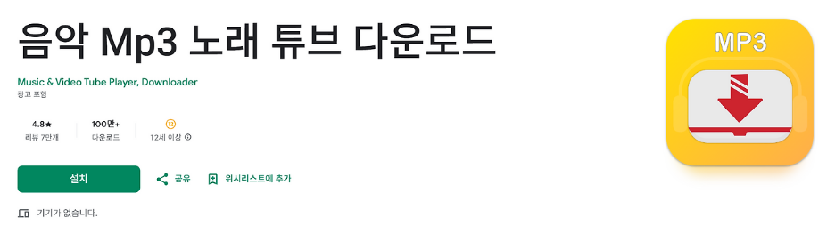 6. 유튜브 동영상 mp3 변환 어플: 음악 Mp3 노래 튜브 다운로드