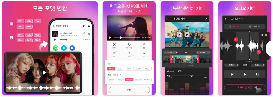 - 오디오 추출: MP3, WAV, AAC 등 변환 지원