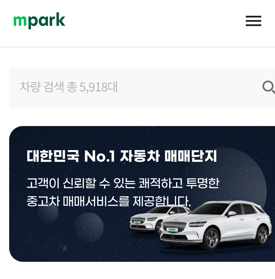 엠파크는 국내 최대 규모의 자동차 매매 단지로, 다양한 차량을 직접 보고 구매할 수 있는 오프라인 기반의 플랫폼입니다.