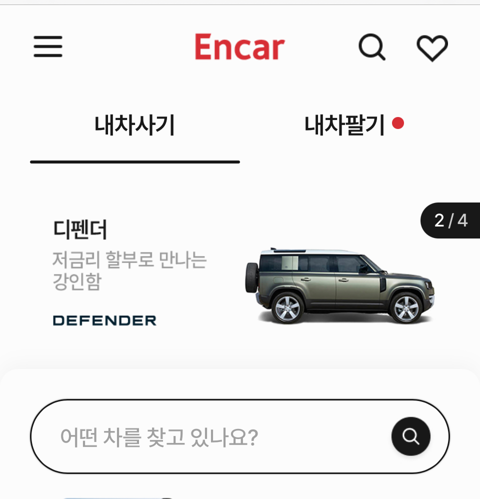 • 엔카: ‘엔카에서 내 차 찾기’ 메뉴를 통해 원하는 차량의 시세를 확인할 수 있습니다.