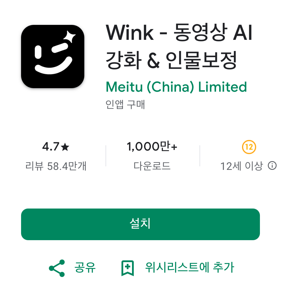 • 아이폰(iOS): 앱스토어에서 “Wink – Video AI Enhancement”을 검색하여 설치 가능합니다. 현재 버전은 2.12.0이며, 2025년 8월 2일 업데이트되었습니다.