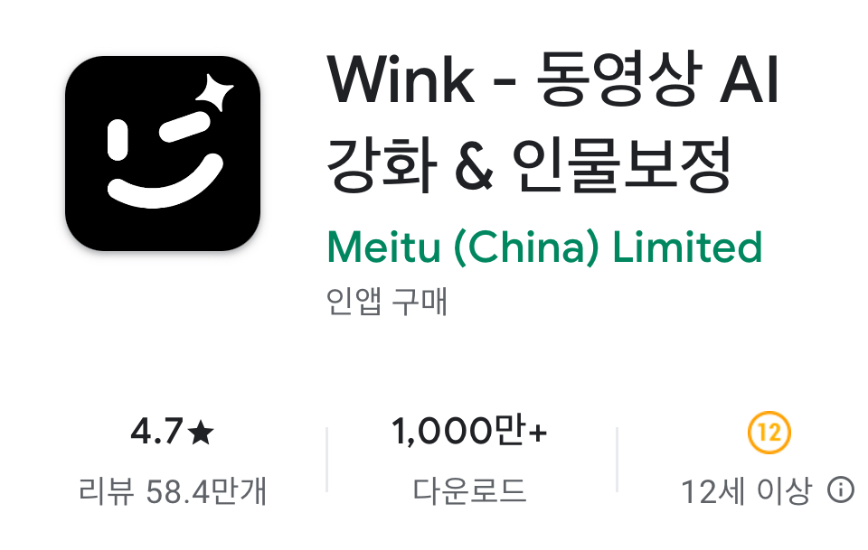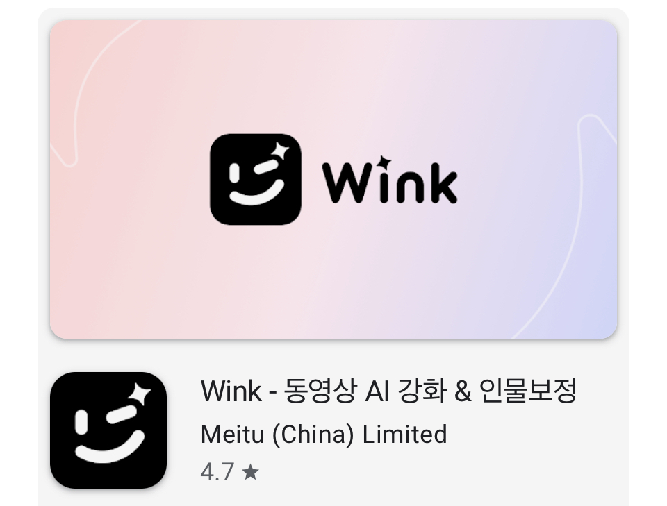 Wink는 글로벌 뷰티 앱 기업 Meitu에서 개발한 동영상 편집 및 화질 강화 애플리케이션입니다. 이 앱은 인공지능 기반의 AI Repair 기능을 통해 저화질 영상을 HD, UHD, 4K급 영상으로 보정할 수 있으며, 인물 보정과 뷰티 효과도 동시에 제공합니다. 특히 흔들리거나 노이즈가 많은 영상도 안정적이고 선명하게 복구할 수 있어 영상 퀄리티를 크게 향상시켜줍니다.