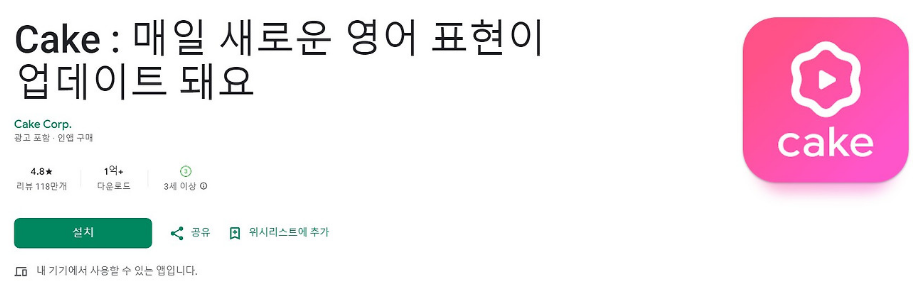 3. 초보 독학 영어회화 공부 어플: 케이크 (Cake) 매일 새로운 영어 표현