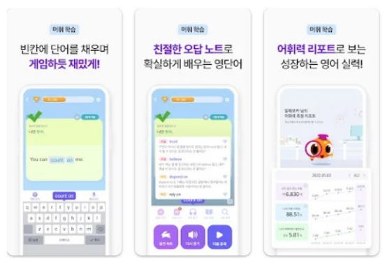 AI가 사용자의 레벨을 분석하여 맞춤형 퀴즈를 제공하며, 자동 복습 시스템을 통해 장기간 기억할 수 있도록 돕습니다. 시험 영어부터 비즈니스, 일상 회화까지 다양한 단어장을 제공해 목적에 맞게 학습할 수 있습니다.