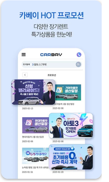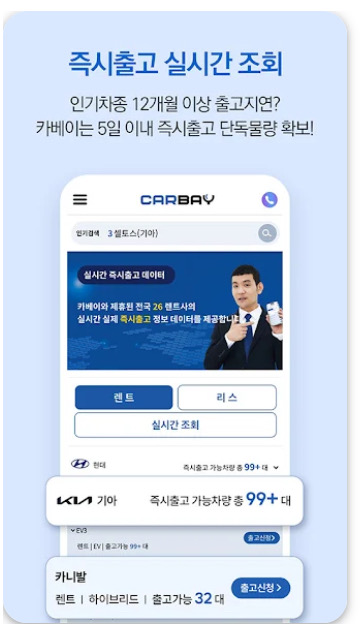 장기렌트카와 자동차리스는 차량 구매 부담을 줄이고, 효율적으로 차량을 이용할 수 있는 방법으로 최근 많은 사람들의 관심을 받고 있습니다. 그러나 다양한 렌트카 업체의 조건과 가격을 일일이 확인하고 비교하는 과정은 상당한 시간과 노력을 필요로 합니다. 이런 과정을 간편하게 만들어주는 서비스가 바로 카베이(Carbay) 앱입니다. 이 앱은 사용자가 원하는 차량의 조건과 가격을 손쉽게 비교하고, 즉시출고 가능한 차량을 실시간으로 확인할 수 있어 신속하고 합리적인 계약이 가능합니다.