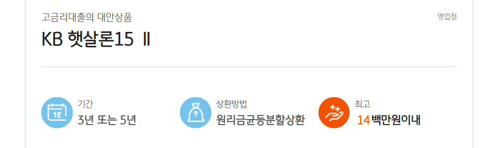 1. 국민은행 정부지원 저금리 대환대출 햇살론15 대출 소개