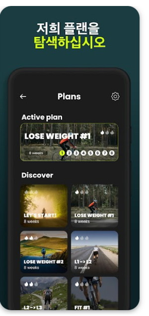 • 맞춤형 운동 플랜: 사용자의 운동 레벨과 목표에 맞춰 5km, 10km 레이스 준비 플랜부터 체중 감량, 체력 강화까지 다양한 플랜을 제공합니다.
