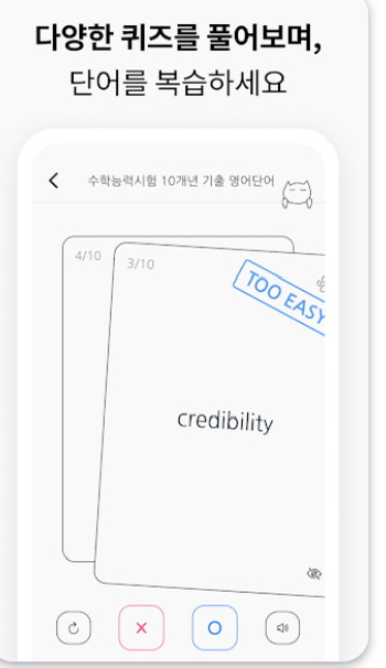 “퀴즈와 재시험 기능이 있어 모르는 단어만 집중적으로 복습할 수 있어 좋습니다.”