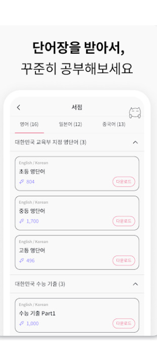 • iOS: App Store에서 ‘VoCat – 나만의 단어장’ 검색 후 다운로드합니다.