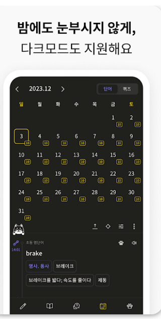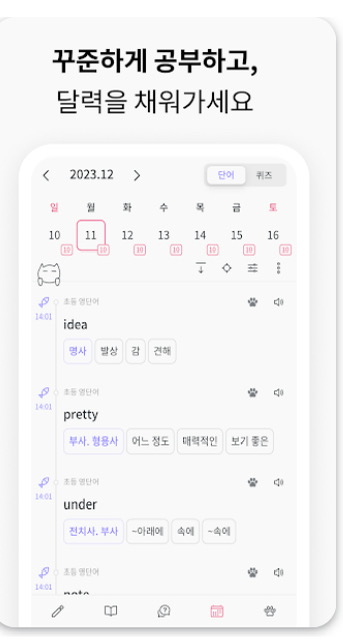 • 통계 및 학습 관리: 학습 달력을 통해 공부한 단어와 진도를 확인할 수 있어 꾸준한 학습 습관을 형성할 수 있습니다.