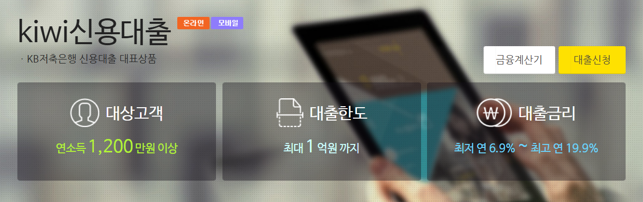 KB저축은행 kiwi신용대출 조건 한도 금리 신청방법 서류