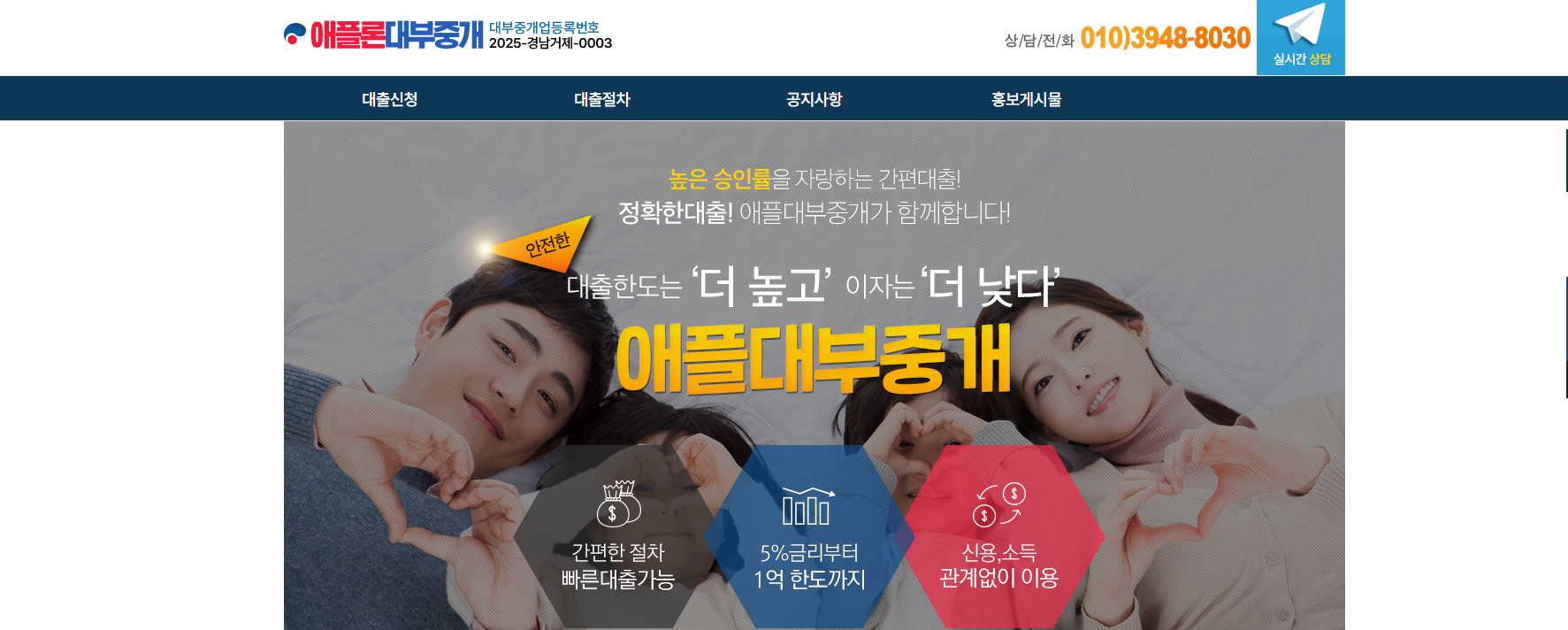 "저는 직장 없이 프리랜서로 활동 중이라 은행권 대출은 엄두도 못 냈습니다. 애플론중개대부는 무직자도 신청 가능하다는 점에서 처음에는 반신반의했지만, 실제로 승인 과정을 거치면서 충분히 신뢰할 수 있다는 걸 느꼈습니다. 한도와 금리 모두 이해하기 쉽게 안내받았고, 대출 실행도 신속하게 진행되었습니다."