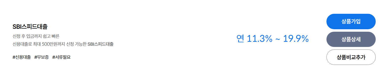 SBI스피드대출은 소액 자금이 필요한 고객을 위해 설계된 신용대출 상품입니다.
